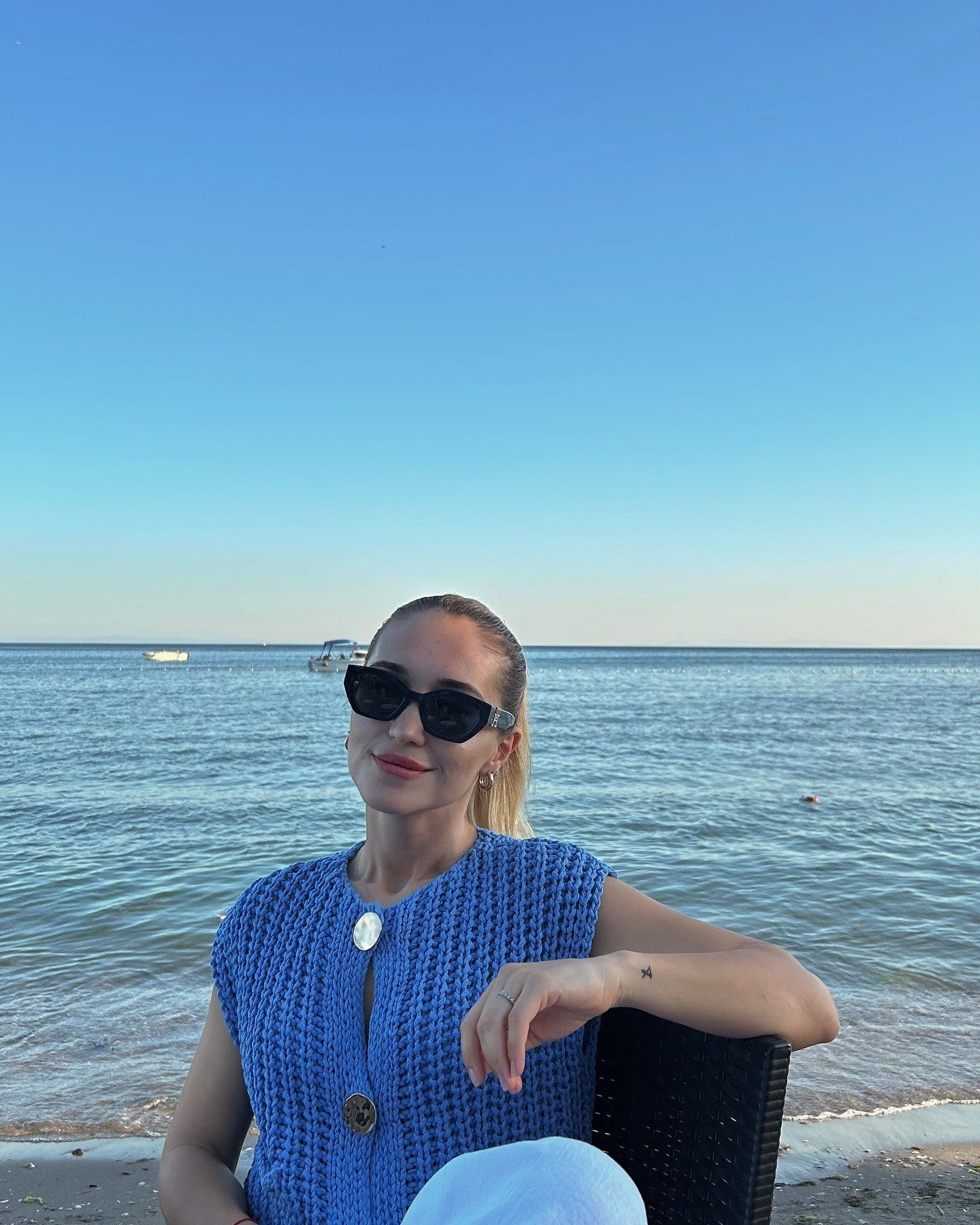 Gold buttons beauty top Blue